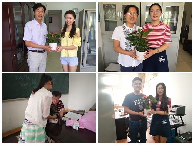 沿袭去年传统,学院今年依然以绿色盆栽作为教师节的特别礼物。教师节当天,领导老师们收到了同学们赠送的绿色盆栽,三两朵初绽的鲜花表达了学子对老师最真挚的祝福。