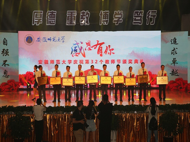 颁奖典礼上,校领导、专家教授分别为获奖代表颁发证书,学生志愿者向获奖教师向上鲜花。我院2015-2016年度的多项工作荣誉喜获表彰:学院档案工作荣获校“档案工作先进集体标兵”称号;学院暑期社会实践工作荣获校大学生暑期“三下乡”社会实践优秀组织单位;学院就业工作分获校研究生就业工作先进单位、本科生就业先进单位;此外,吴文涛荣获校“就业工作先进个人”。