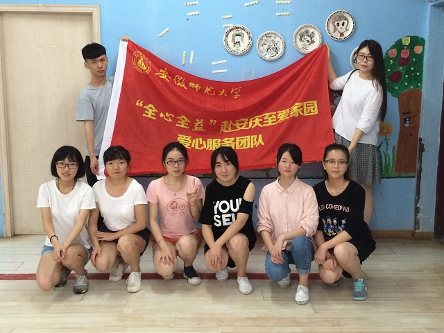 (本网讯 教科院 刘慧)应着“青春三下乡”的号角的吹响,跨越2个院4个专业的同学们就这么自然的聚在一起成立了一个实践团队,将所学所识回馈给我们的家乡——宜城安庆。团队实践地点是安庆市大观区残障中心至爱家园,家园内招收的是有言语障碍的幼儿,而且大部分的幼儿政府都有着一定的资助,在这样一个充满爱意的地点,“全心全意”赴安庆市至爱家园爱心服务团队全体8人在7月4日开始开展了为期10天的实践活动。