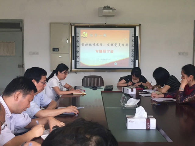 本网讯(教科院  马兴)7月8日下午,教育科学学院全体党员教师分支部围绕“两学一做”第二专题“坚持根本宗旨,发挥党员作用”进行了学习讨论。