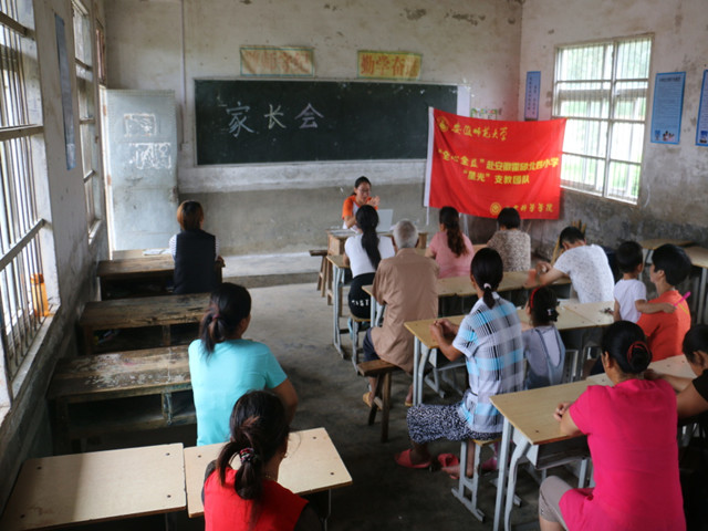 团队希望将家庭教育对儿童发展的影响更好的传递给父母长辈,在7月13日下午面向四、五年级的学生举办了主题家长会,主要讨论家庭教育以及怎样进行更好的家庭教育,为孩子成长奠定良好的基础。家长会吸引了众多家长前来倾听,队员们依次发言,家长们畅所欲言,不仅表达了自己的理念,同时也耐心的倾听他人的意见。整个家长会取得了很大当地反响。希望通过这次家长会将优秀的家庭教养方式渗透到各家庭中。