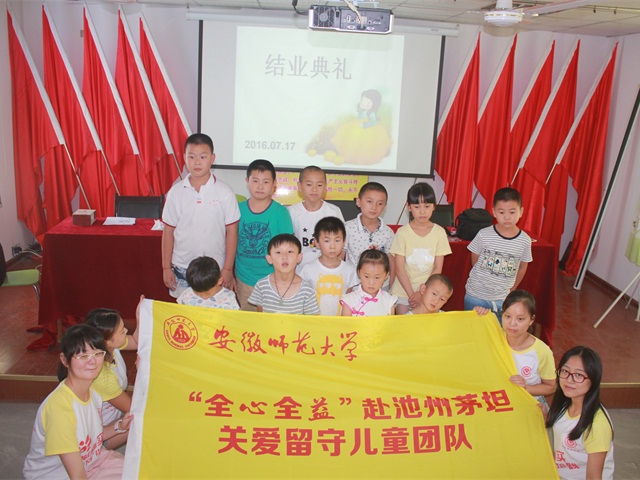 为了深入学习贯彻党的十八大和十八届三中、四中、五中全会精神以及强化习近平总书记系列重要讲话精神,大学生应该积极参与社会实践,关注民生、走向基层。因此,面对容易产生心理问题的留守儿童这类特殊群体,来自安徽师范大学两个年级两个专业的7位同学组建了“全心全益”赴池州茅坦村用心关爱留守儿童团队,在池州茅坦村开展了为期一周的志愿服务活动。