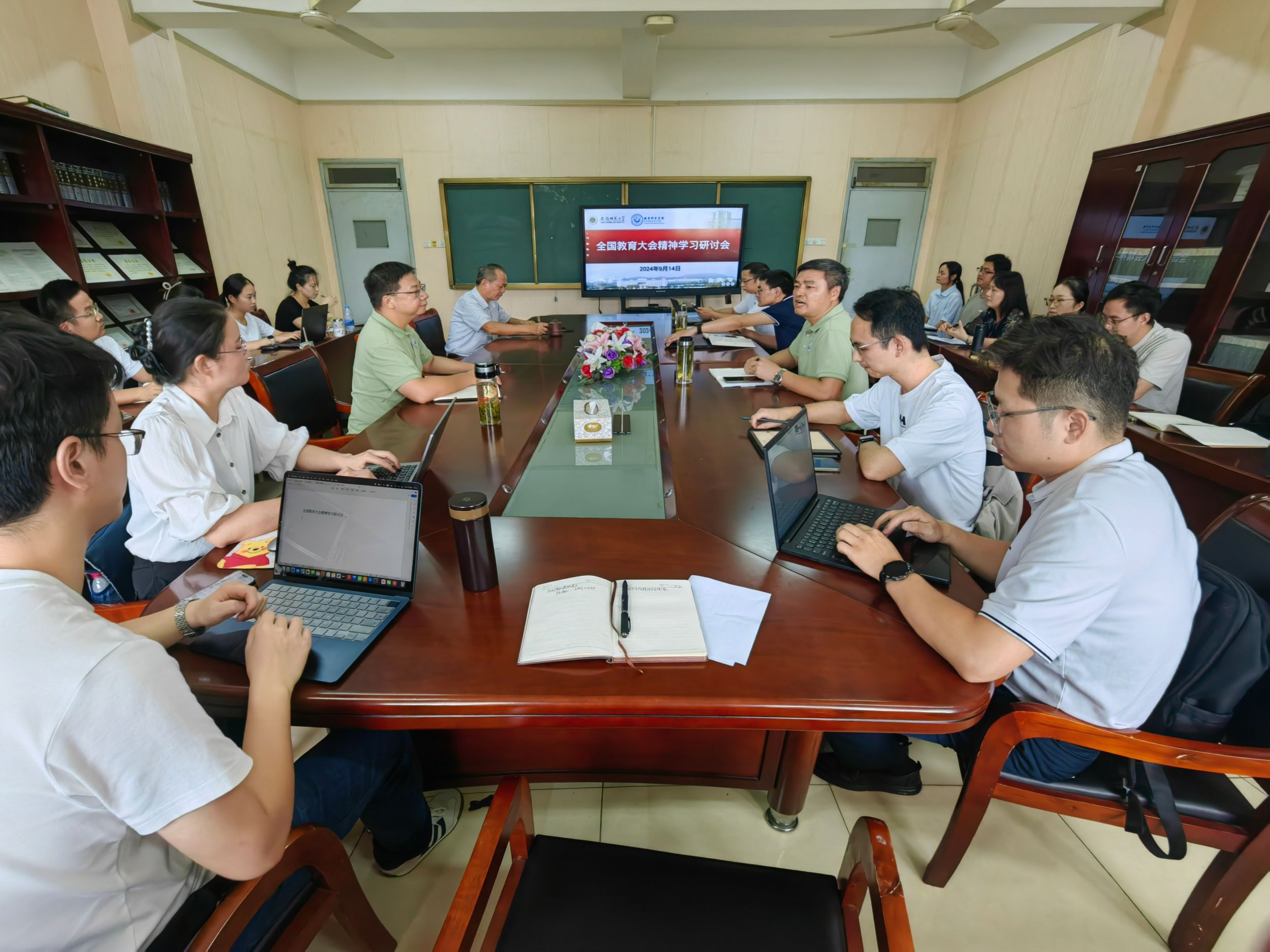 阮成武教授对新中国成立以来已召开的六次全国教育大会进行了系统梳理,并就我国加强教育强国建设的任务与挑战、这次全国教育大会关于教育强国建设的战略部署等方面进行了阐释。与会师生分别围绕教学、科研、学业等方面,交流了学习体会。大家纷纷表示,全国教育大会引出了许多教育研究新课题,为广大教育工作者提供了广阔的研究空间。李宜江鼓励大家,要深入学习贯彻全国教育大会精神,紧紧围绕立德树人这个根本任务,把自己的学术研究与教育强国建设紧密结合起来,弘扬教育家精神,培养德智体美劳全面发展的社会主义建设者和接班人。