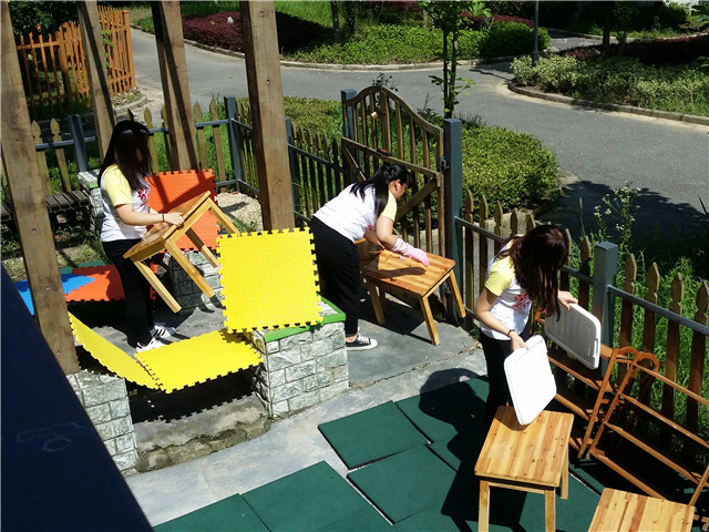 6日下午,芜湖终于迎来了大好晴天。前几天转移的物资有很多因受潮而滋生了霉菌,这在一定程度上影响了孩子们的健康学习。经过合理商议安排,队员们纷纷拿起抹布准备大战霉菌。由于器具较多,天气炎热,中途成员们又交换了工作,整整一下午,队员们来来回回跑,里里外外擦,齐心协力,团结合作,院子里很快就摆满了各种教学器具,小到书本玩具,大到桌椅板凳;当所有的工作都顺利完成的时候,队员们才长舒一口气,脸上也露出了开心的笑容。大家都有一个共同的目标:希望孩子们有一个良好健康的学习环境。
