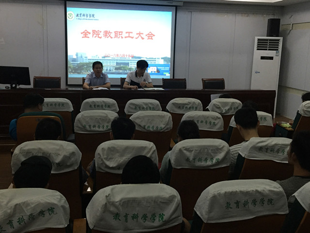 本网讯(教科院 卞纲要)6月15日下午,教育科学学院在三楼学术交流中心召开教职工大会,总结近期工作情况,全面部署安排学期末的各项工作。会议由党委书记刘晓宇主持。