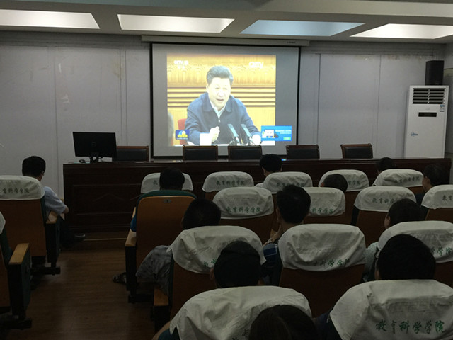 开会前,全体教职工集中观看了习近平参加哲学社会科学座谈会的新闻报道视频,学习了习近平在座谈会上的重要讲话精神。随后,学院领导对近期各自分管的工作情况分别进行了通报,并对学期末的工作进行了布置,提出工作方向及目标。
