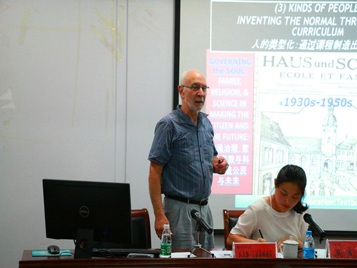 本网讯(教科院 罗萍萍/文)为进一步拓展我院研究生的学术视野,繁荣学术交流。受学院邀请,6月15日上午8点,在教科院三楼学术交流中心,美国著名课程论学者,威斯康星大学麦迪逊分校托马斯S波普科维茨教授作了题为《课程研究与学科教学炼金术:差异与拒斥的诞生》的学术报告。报告会由课程与教学论专业导师吴支奎副教授主持。