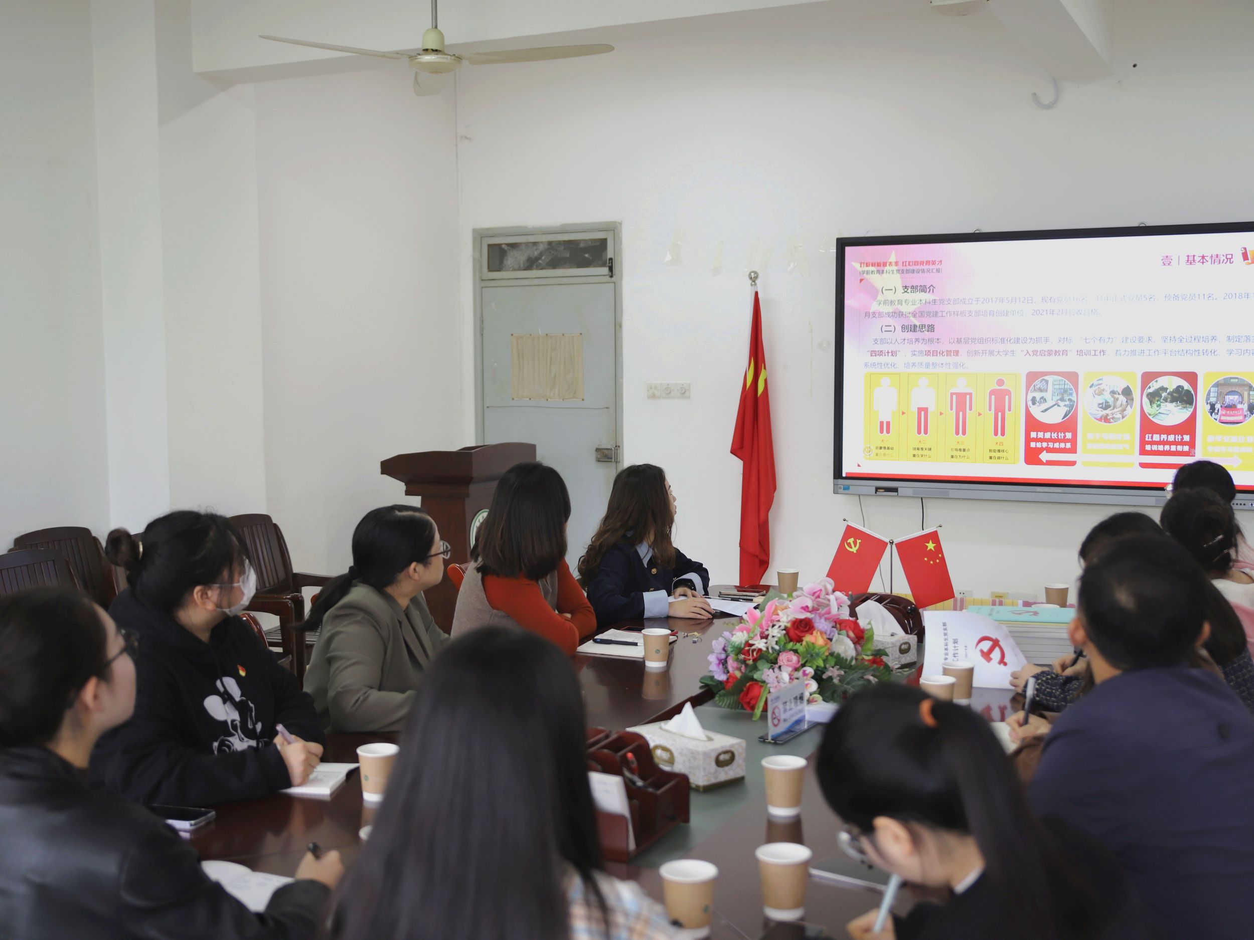 蔡文对学前教育本科生党支部获批“教育部新时代高校党建双创工作全国党建样板支部培育创建单位”的相关工作经验进行了介绍,总结经验的同时也指出了不足和努力方向,为双方未来的党员发展、党的建设等工作提供了新思路。赵茜介绍了教育学本科生党支部当前“六维一体”的发展指标。赵茜指出,目前该指标也在全院进行了推广并受到一致好评,在入党流程中做到了公平公正、公开透明。金凤仙就学生资助工作进行了交流分享,提出在资助工作中应做到事无巨细,真正落实“应助尽助”的资助原则,保证真正困难的学生可以得到及时、充分的帮助。蔡文介绍教科院24届毕业生考研、就业情况。学前教育系辅导员张晨表示,在未来的工作中会多加沟通和交流,共同促进未来联合培养工作的开展,助力学生成长。