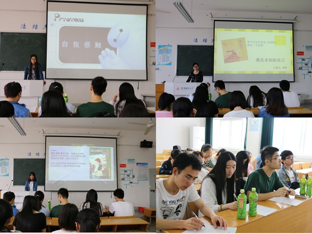经过前期选拔,共有6位同学进入最终决赛。杨昕同学分享了金子美玲的儿童诗《向着明亮那方》,富有深情的演说,给人十分深刻的领悟。王玉同学介绍的《我们时代的神经症人格》,全面分析了现代人的病态心理和变态人格,是一部经典之作。章威同学推荐的《你的孤独,虽败犹荣》一书围绕年轻人最有共鸣的话题:孤独,讲述33种形式各异但又直抵内心的孤独,慷慨激昂的背景音乐加上铿锵有力的语调,给人一种别样的震撼。