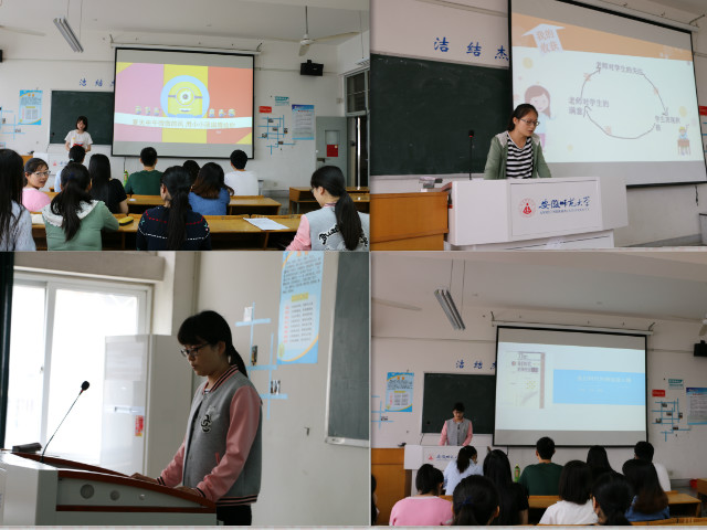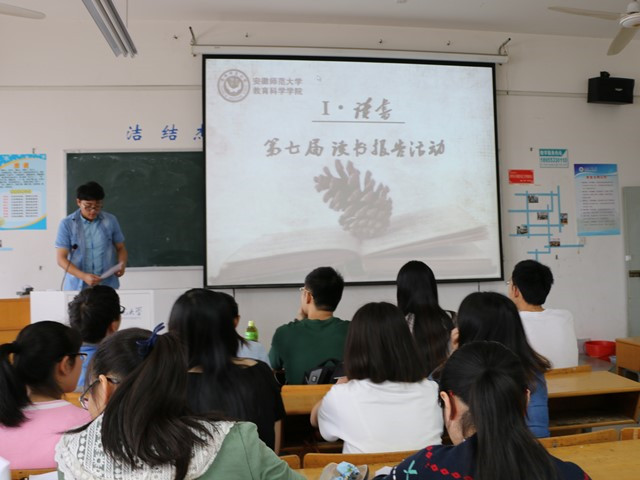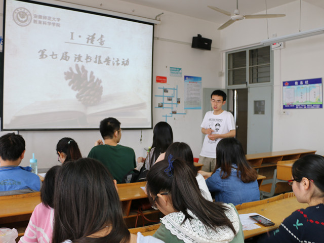 本网讯(教科院 马舒婷)精读一本好书,点亮一盏心灯。为了激发同学们的读书热情,丰富我院文化生活,提高学生的阅读水平,创建浓郁的校园读书氛围,教科院院于5月28日举办了素质教育活动月最后一场专业活动:“I·读书”经典著作交流分享会,院学生会主席周祖浩,副主席陈凯、王淑婷,梦飞翔教育学社社长赵洋以及学习部副部长汪歆玥,担任此次比赛的评委,比赛由学习部部员石浩田同学主持。