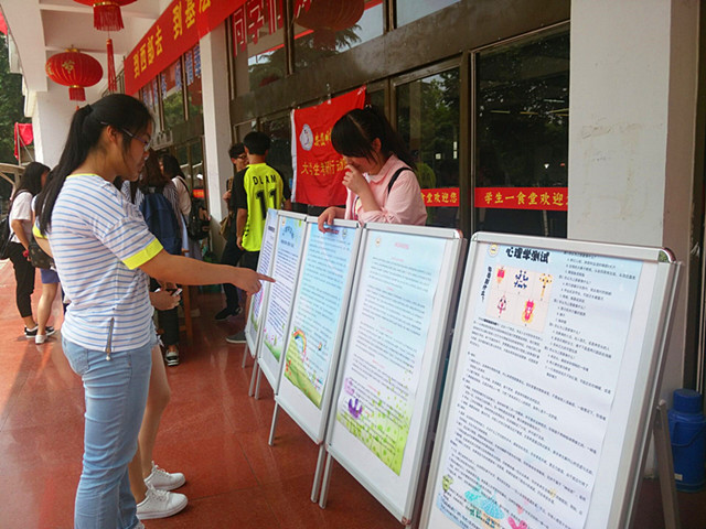 5月25日,心理研究会于食堂广场展出了系列展板。展板涵盖了心理学相关知识、生活中的心理学、心理学电影推荐等等。工作人员向同学们讲解了展板内容,吸引了不少同学的驻足观看,也让更多的同学了解心理学,揭开心理学的神秘面纱。