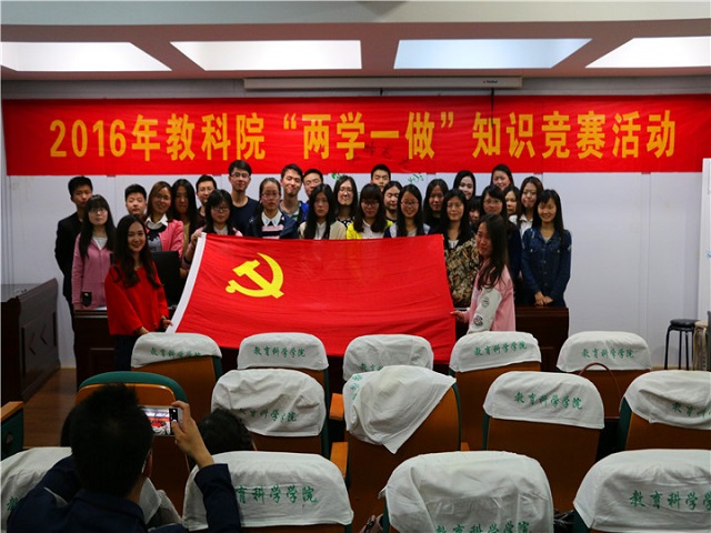 本网讯(教科院 胡冉冉)为进一步增强我院学生党员的理论素养,提升学生做一名合格共产党员的能力,教科院分党校于4月27日晚举办“两学一做”知识竞赛活动。教科院第三期党员教育培训班全体学员、研究生党支部以及2013级本科生党支部成员参加了本次活动。