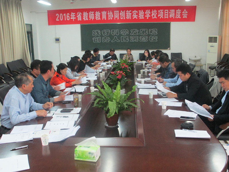 本网讯(教科院 孟庆娟)4月15日下午, 安徽省教师教育协同创新中心在弋江区南瑞实验学校行政楼二楼会议室召开实验学校项目调度会。弋江区教育局局长王敏,纪工委书记詹玉坤,副局长任忠友、周虹民,协同创新中心副主任阮成武、葛明贵,教育科学学院副院长聂竹明,弋江区各实验项目学校校长、协同创新中心挂职副校长(园长)、首席专家等30余人参加了会议。会议由弋江区教育局副局长任忠友主持。