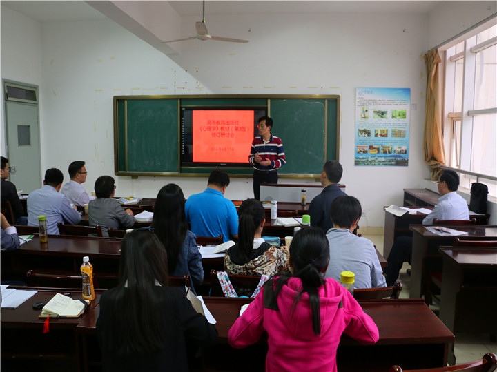本网讯(研究生 胡冉冉)高等教育出版社出版的《心理学》(第2版)是国家级精品资源共享课程、普通高等教育“十一五”国家级规划教材、国家精品课程教材和面向21世纪课程教材,出版以来对推动我国高等院校公共心理学教学改革,提高人才培养质量,促进心理学科发展发挥了积极作用。2016年4月17日下午,在教育科学学院召开《心理学》(第3版)修订研讨会。研讨会由姚本先教授主持,参与修订工作的老师和研究生参加了会议,王道阳、何元庆老师向大家传达了高教社“新形态教材编写研讨会”的会议精神,并结合会议精神提出《心理学》(第3版)修订方案。