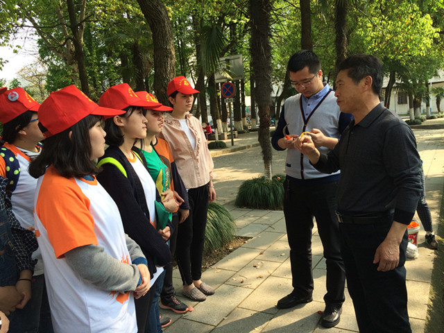 在活动开始之前,赭山校区校园绿化维护办的负责人窦老师为大家做了简单的志愿服务培训。他向同学们介绍了校园绿地除草的基本要领和注意事项,“如何做到除草稳、准、狠”,“除草工具如何使用才更加有效”……,随后,他为大家发放了小型镰刀和手套等工具。