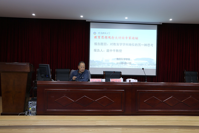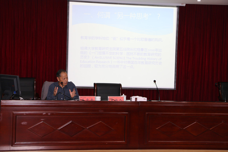 扈教授座谈期间幽默风趣的谈话风格使报告会现场气氛和谐融洽,引起了在座所有老师及学生的阵阵掌声。扈教授强调了我们不应夸大教育学的作用,这样不利于教育学的发展。同时扈教授还充分阐释了按教育规律办教育和按教育学规律办教育的区别。扈教授指出教育研究者完全不必过分自责,不必总是处在危机感中,只要教育存在,教育研究和教育学就将永远存在,只要教育存在,教育问题就会不断产生。教育研究者应该自信地去研究每一个教育问题,虽然什么人都可以对教育说三道四,见仁见智,但专门的教育研究者,永远具有不可替代性。