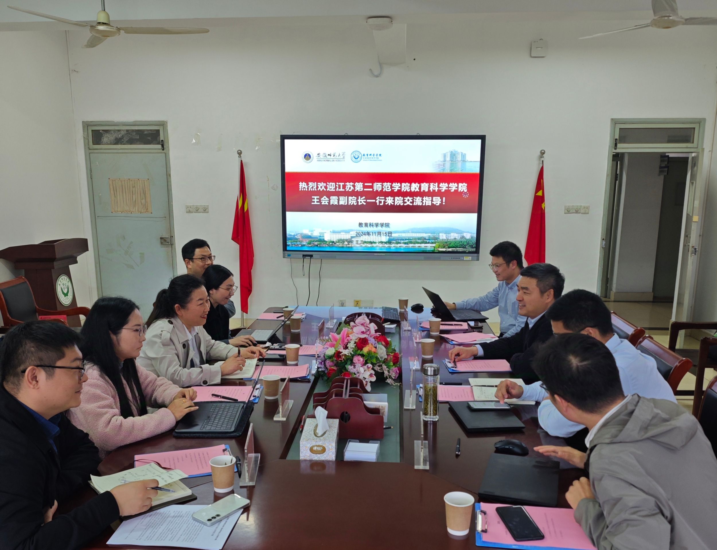 11月15日上午,江苏第二师范学院教育科学学院副院长王会霞一行来我院调研交流。学院院长李宜江,副院长吴文涛,教育技术学专业肖文、王清、周进等教师代表参加了交流会,会议由肖文主持。