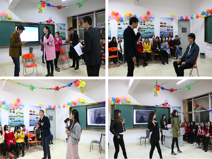 本网讯(裴扬/文 孙力力/图)花开三月一片片,女生最是惹人怜。3月7日晚,伴着和煦的春风,拽着青春的尾巴,我院与物电学院研究生会联合举办的“女生节”交流晚会在教科院412教室火热举行。15级辅导员随小莉、童张梦子、邵晓、魏成成等与15级部分研究生参加晚会。晚会由院研会女生部杨洁、物电学院研会体育部郑文志同学联手主持。