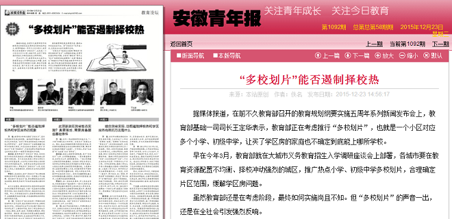 “多校划片”能否成为遏制“择校热”和学区房热的“良方”,如果真的实施,还有可能面临哪些问题,当前的“择校热”有什么“良方”能够更好地破解呢?对此,我院李宜江教授应邀接受《安徽青年报》记者专访。