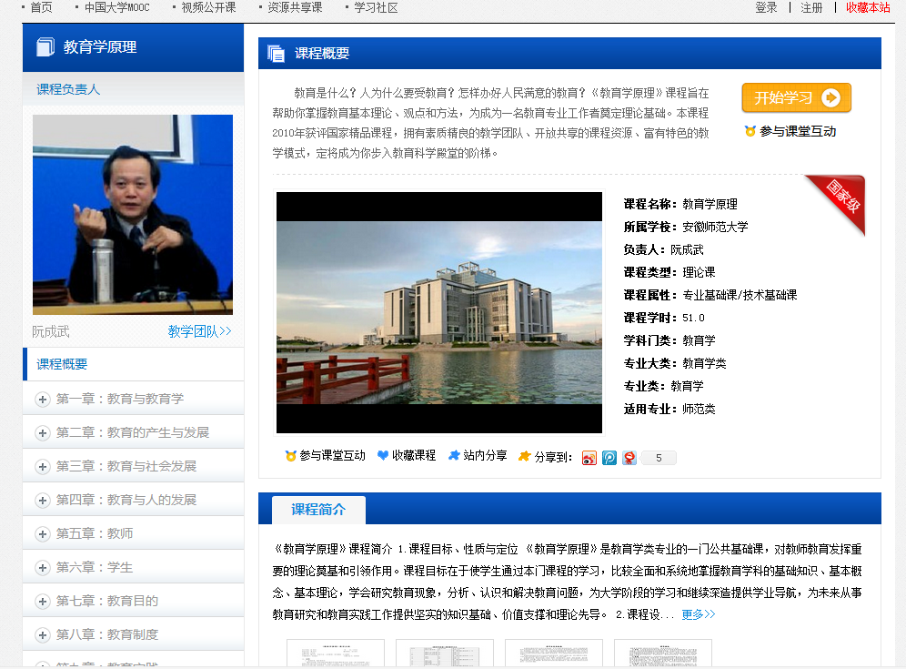 国家级精品资源共享课《教育学原理》成功上线教育部“爱课程”网,研制教师教育课程建设方案并编写系列课程教材7部,开展“与中学名校长面对面”、“与幼儿园名园长面对面”、“皖江心理大讲堂”、“知行大讲堂”等活动,增强人才培养实效性。