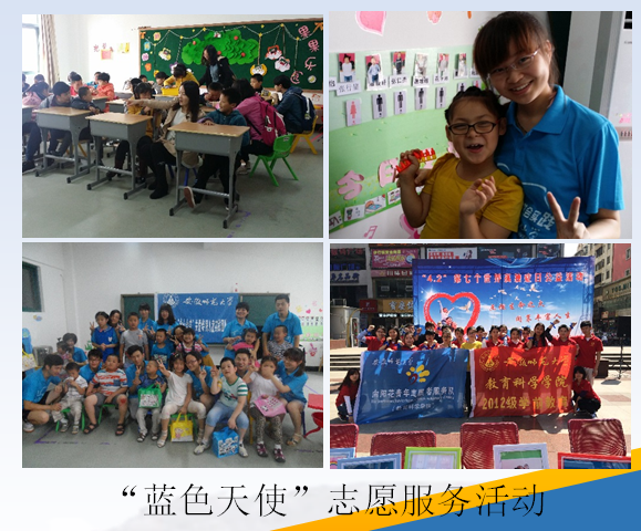 建立“蓝色天使”志愿服务团队,开展的关爱自闭症儿童活动获校“十佳事迹”称号,暑期社会实践取得历史性突破,首次荣获校暑期社会实践优秀组织奖。