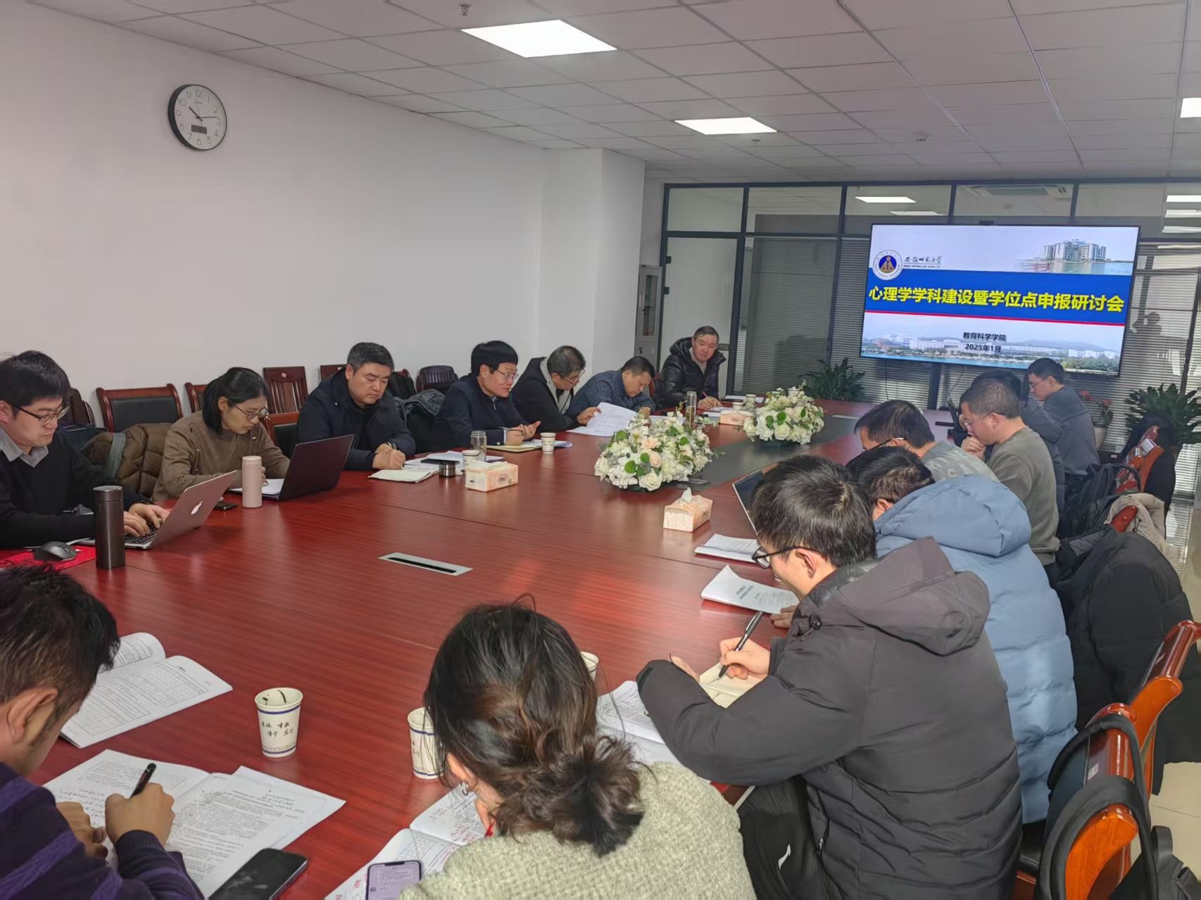 2025年1月14日上午,心理学学科建设暨博士点申报研讨会在花津校区文典楼A414会议室召开。学术副校长辛涛教授,心理学科带头人、研究生院院长桑青松教授、教育科学学院院长李宜江教授、副院长韩建涛教授、网络安全与信息化办公室副主任聂竹明教授,以及心理学科学位点负责人、方向带头人及骨干教师等二十余人参加会议,会议由李宜江教授主持。