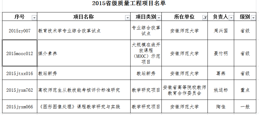 本网讯(教科院 黄引娣)在学院的精心组织和广大教师的积极参与、申报及共同努力下,我院2015年省级“质量工程”项目申报工作取得了可喜的成绩,这些项目分别是:专业综合改革试点1个、大规模在线开放课程(MOOC)示范项目1项、教研项目2项、教坛新秀奖1个。实施质量工程是提高教学质量的重要手段,是当前和今后一段时期教学工作的重点,各位老师应将此作为契机,进一步深化本科教学改革工作,加强建设成果的宣传推广和应用,充分发挥项目的示范作用。