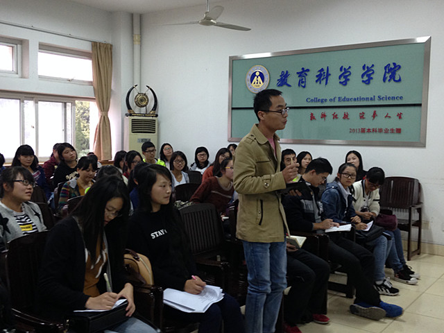本网讯(教科院 尚娟 代青清 万旋)教育之于心灵,犹雕刻之于大理石。为启迪学生心智,拓宽专业视野,增强专业认知,促进学生终身发展,让未来教师们更好的感受教育、理解教育、形成远大教育理想,教科院于10月28日下午在412教室和院会议室分别举行了“名校长面对面”、“与名园长面对面”主题沙龙活动,共谈教育、共话成长。该活动是学院近些年来打造的“基础教育名校长(名园长)、教学名师进大学课堂”的特色品牌系列活动之一。活动的举办旨在整合基础教育优质资源,创新教师教育职前培养的新路径,形成协同育人的新机制、新模式。