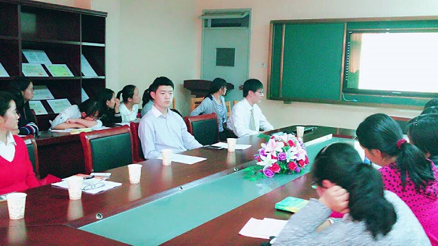 座谈会伊始,班主任朱立新老师向各位同学隆重介绍了美国布莱诺大学的几位老师,并对他们的到访表示欢迎,对他们为同学们的指导表示感谢。接着布莱诺大学中国办事处主任汪天翼老师向同学介绍了布莱诺大学的历史,地理位置,气候,专业,办学优势,毕业就业情况以及在美国的学习生活情况。汪老师的介绍使同学们拓展了视野,加深了对美国教育的了解。同时,同学们结合自己的学习情况,也产生了很多的疑惑,汪老师耐心地详细地为同学们答疑解惑。