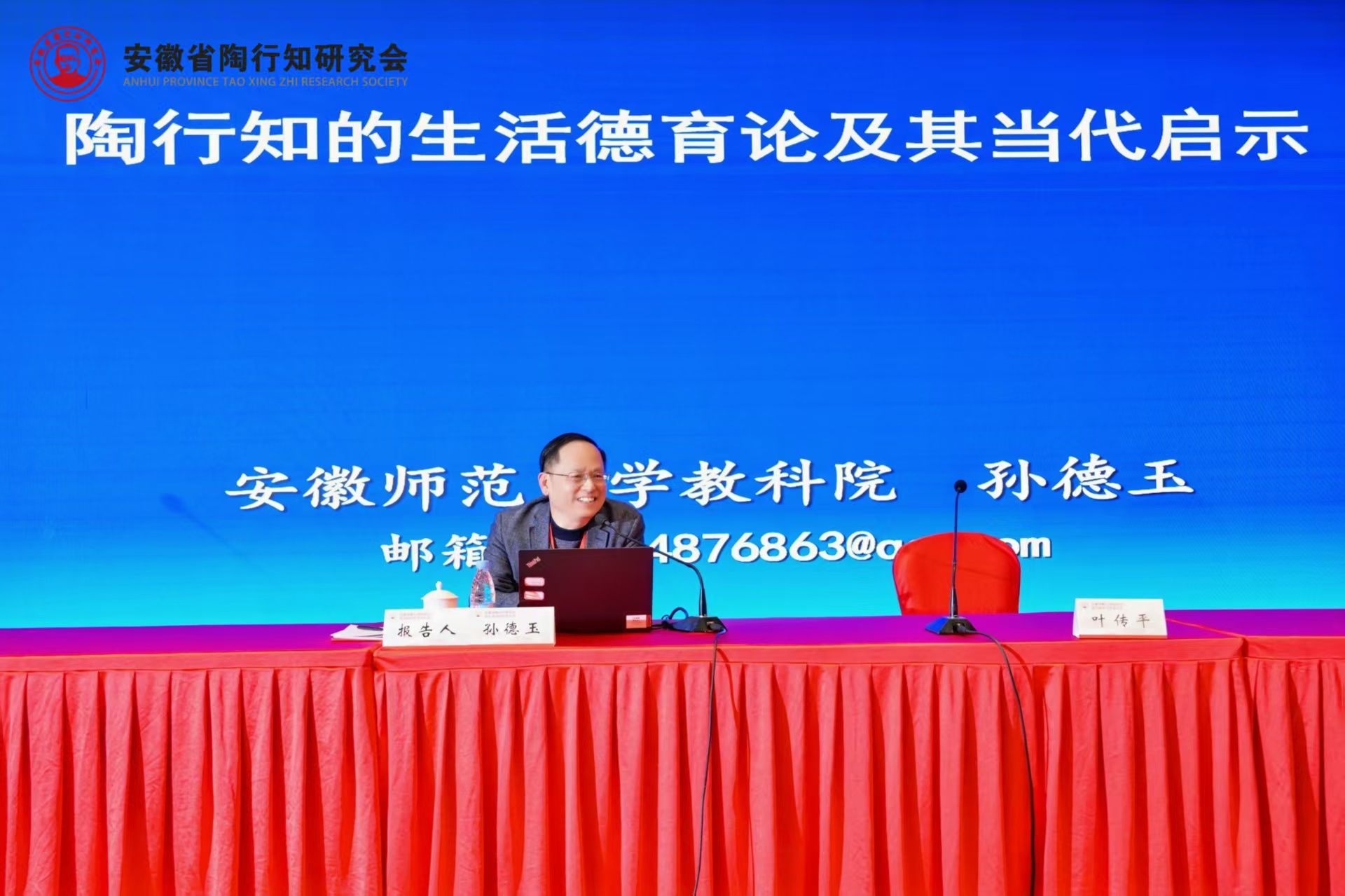 2025年3月29日,安徽省陶行知研究会第九届会员代表大会在合肥召开,教育科学学院孙德玉教授受邀出席。会议由安徽省陶行知研究会秘书长钱立青教授主持,安徽省陶研会会长、合肥师范学院党委书记徐成钢代表第八届理事会作了工作报告。会议听取、审议并表决通过第八届理事会工作报告和财务报告;会议还选举产生了新一届理事会,我院孙德玉教授当选副会长,并应邀做了题为《陶行知的生活德育论及其当代启示》的学术报告,受到与会代表的一致好评。