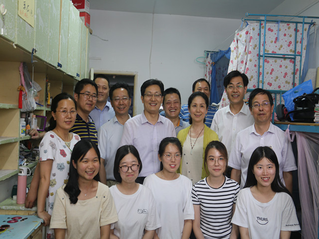 12号下午四时许,校党委副书记、校长张庆亮在学生工作处处长刘晓宇和学院全体领导的陪同下深入我院本、硕毕业生宿舍,送上毕业祝福,检查安全问题,并与毕业生进行亲切的面谈。张庆亮校长仔细询问了毕业生离校手续办理情况、行李准备情况、就业情况等,并给予同学鼓励与支持。他教育毕业生们要不忘初心、砥砺前行,在未来人生道路上勇攀高峰,取得更加优异的成绩。与此同时,毕业生们再次表达了自己对母校的眷恋和不舍,表示今后无论身在何方,都会铭记老师教导,牢记母校恩情。校院领导把学生的安全幸福牢记心间,多次强调要注意离校安全。千言万语道不尽离别情谊,所有情意定格在一张充满笑意的大照片中。