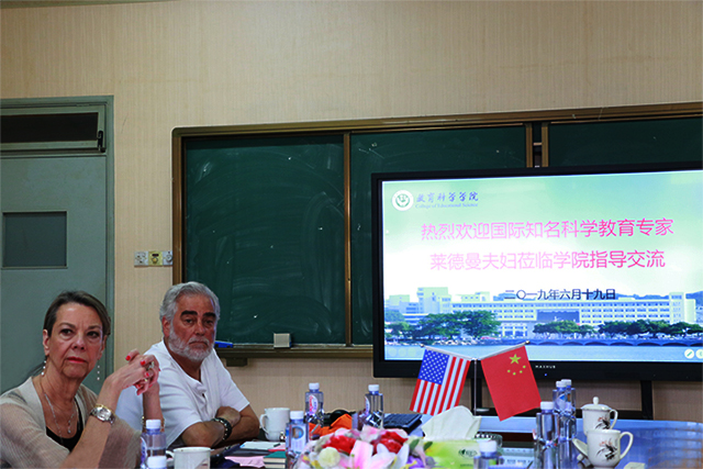 本网讯(文/孟庆娟 李梦悦 图/朱瑞) 6月19日下午,国际知名科学教育专家、伊利诺伊理工大学数学与科学教育教授诺曼·莱德曼,副教授朱迪斯·莱德曼夫妇一行来到学院指导青年教师教师科研国际化发展。中国科学技术大学新媒体研究院副院长徐奇智、校国际交流合作处副处长葛亚东、学院科研与研究生工作分管副院长聂竹明、生科院陈明林教授、学院青年骨干教师参会交流,会议由院长桑青松主持。