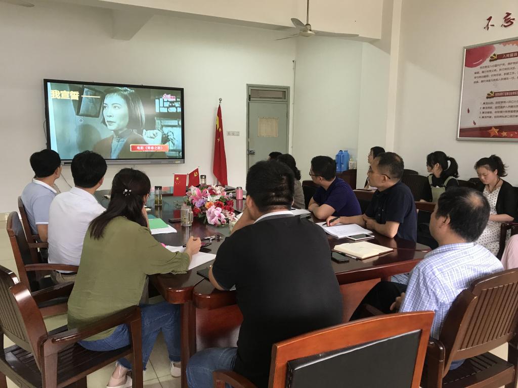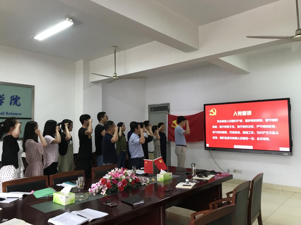 随后,全体成员一起观看庆祝建党98周年献礼片《我宣誓》,回顾中国共产党的艰苦历程,重温党的光辉历史。观影结束后,院长桑青松带领全体与会人员面对鲜红党旗,高举右手,庄严宣誓,通过重温入党誓词的方式激励大家不忘初心,牢记使命,砥砺前行。