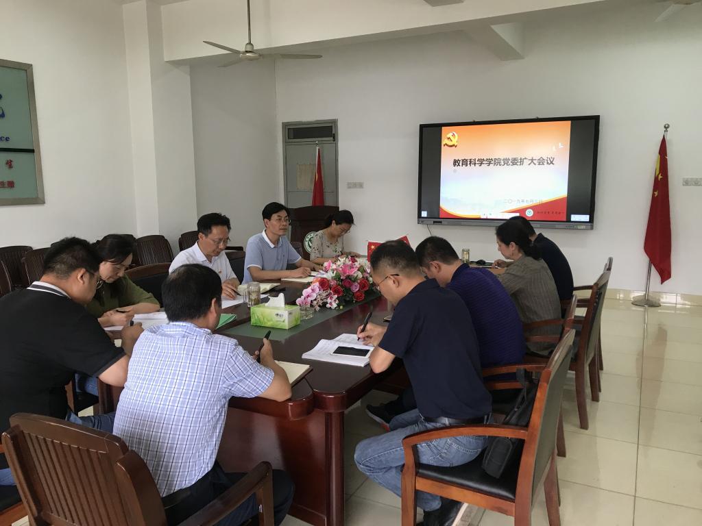 本网讯(教科院 张慧)7月3日,教育科学学院召开党委扩大会议,传达学习校党委7月1日全委会扩大会议精神,通报本学期工作情况,布置近期工作。学院党委书记方泓主持会议,学院党委委员、各支部书记参加会议。