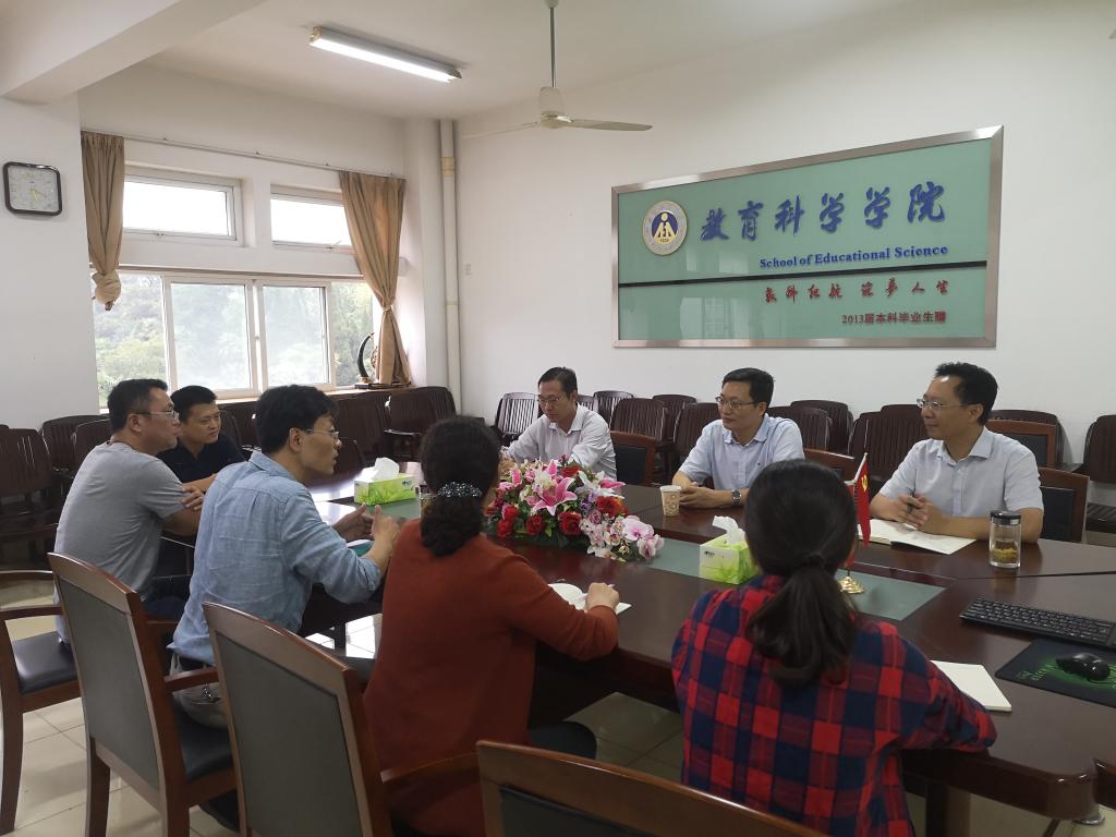 本网讯(教科院)9月3日下午,校长张庆亮到教科院调研指导学院发展工作。校办副主任张顺陪同调研,教育科学学院党委书记方泓、院长桑青松、副书记张如华、副院长聂竹明、何海燕、张更立等在学院308会议室参加了调研座谈会。