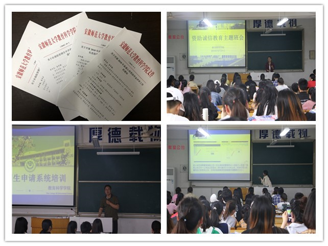 健全的制度是学院各项资助工作顺利实施的基本保障,学院根据学校贫困生资助的相关文件精神,立足于我院实际,制定了系列资助文件,并结合易班数据建立贫困生库,规范了我院贫困生资助的相关制度,保障了各类奖助学金的顺利评审。为确保资助工作的精准公平,在今年贫困生认定时,学院组织贫困学子召开资助诚信教育主题班会暨贫困生认定系统培训会。针对首次易班网上申请工作手把手帮助同学们熟悉申请流程,各年级辅导员仔细梳理贫困生资料,严格按照“个人申请——班级评议——辅导员审核——学院评审——公示”的程序,确保资助工作公平、公正、公开。并向同学们详细介绍国家助学贷款和其他资助相关政策,观看诚信教育的相关视频短片,强化自强、感恩、诚信、奉献意识,提升资助育人时效性。
