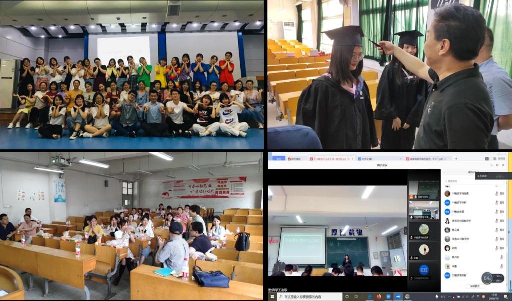 毕业总带着伤感,而校院领导老师的殷殷嘱托更像是“暖心剂”,给离别的场景增添了一抹“欢送”的喜色。张庆亮校长在深入学生宿舍慰问毕业生时,对于同学们四年来取得的成绩以及毕业后的选择给予了充分肯定,并鼓励同学们在新的起点、新的岗位上继续努力、积极进取,力争取得更大的成绩,为母校添光增彩。校领导的勉励和期许让同学们振奋,“专业话别会”的举行则留下更多感动和难忘。作为教科院今年毕业生文明离校工作的亮点,学院在充分考虑疫情防控的现实情况下,取消了集中举行毕业典礼的初步想法,将更多的时间留给了悉心教育、陪伴学生四年的老师们。7个专业,226位学生,每一位同学都参与到了这一次的“话别会”当中,这其中既有视频连线时的感情流露,也有走上讲台时的依依不舍;既有师生共话时的丝丝回忆,也有欢声笑语背后的点点泪光。老师们的谆谆教诲体现了身为人师的责任与使命,同学们的深情点头展现了师大学子的担当与意志。“以勇气际会挑战;以自信际会机遇;以忠贞际会爱情;以温暖际会友谊;以奋斗际会成功;以乐观际会曲折;以沉思际会人生;以感恩际会生活;以宁静际会自我;以大爱际会世界。”生命际遇的背后不仅是师大“厚重朴实、至善致远、追求卓越、自强不息”精神的传承,更是师大“勤学慎思、质朴谦逊、知行合一、求实求新”的学风的践行。