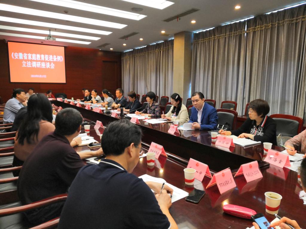 2019年3月18日,安徽省委统战部副巡视员、省妇联副主席张翔,安徽省妇联家庭儿童工作部部长韩艳、主任陈琛一行首次莅临我校,就《条例》起草工作开展调研。副校长彭凤莲,校党委常委、统战部部长王如意,发展规划处、教育科学学院负责人及相关专家教师参加会议。与会领导、专家就家庭教育法规的功能发挥、立法工作机制及具体工作等展开热烈讨论。