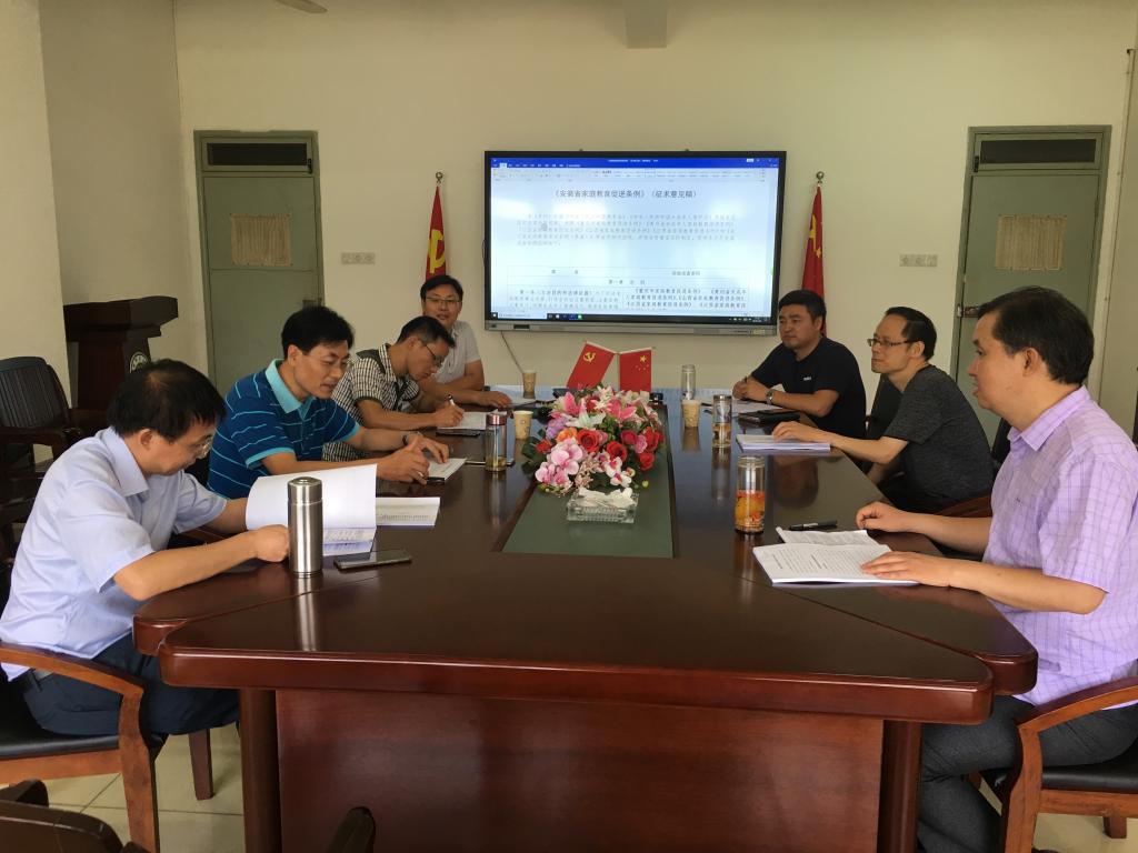 为深入贯彻党的十九大精神以及习近平新时代中国特色社会主义思想,落实《教育部关于加强家庭教育工作的指导意见》,促进家庭教育事业发展,引导全社会注重家庭、注重家教、注重家风,保障未成年人健康成长,增进家庭幸福、社会和谐,安徽省拟颁布《安徽省家庭教育促进条例》。省妇联委托学院承担《条例》起草工作,由桑青松教授领导,法学院余俊教授,我院李宜江教授、方双虎教授、孙德玉教授、桂守才教授、王道阳副教授、郑筱妍副教授、全莉娟副教授、王礼军老师以及部分研究生参与此项工作。