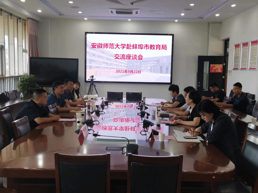 本网讯(教科院 王薛晴)922日下午,在学院院长、校智能教育研究院院长李宜江教授带领下,我院师生一行12人赴蚌埠市教育局开展智能教育专题交流。蚌埠市教育工委委员、蚌埠二中校长刘善训、蚌埠市江淮智慧研究研究院院长唐巍、蚌埠市教育局人事科科长王帅以及我院副院长张更立教授、校智能教育研究院执行院长、信息管理中心副主任聂竹明教授、研究生管理办公室负责人叶方舟老师等参加交流座谈会。会议由蚌埠市教育工委委员、市教育局副局长段元丽主持。