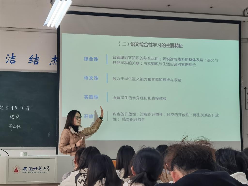 本网讯(教科院 江珊)1117日上午,我院陈娜老师在田楼8504教室为师生们呈现了一堂精彩的《小学语文教学法》公开课。本节课的教学内容是“综合性学习的教学设计与实施”,授课对象为2019级教育学、小学教育学专业学生。学院领导、学校及学院教学督导专家、教育系全体教师及学院部分中青年教师共同观摩了此次教学公开课。