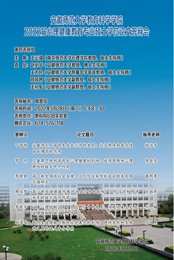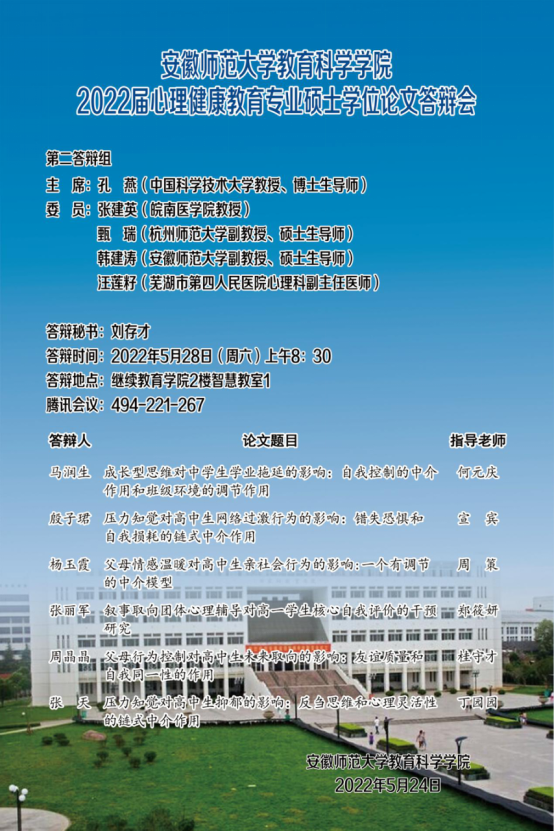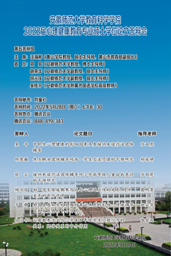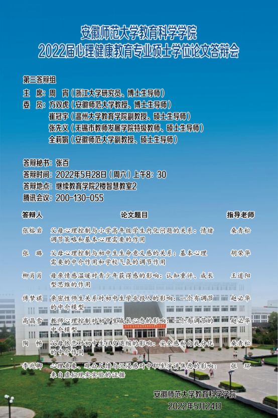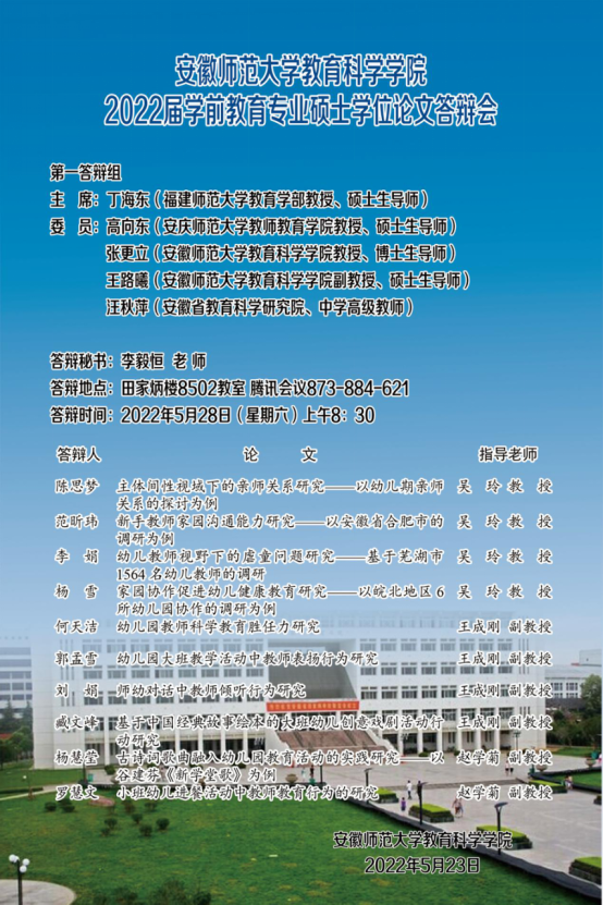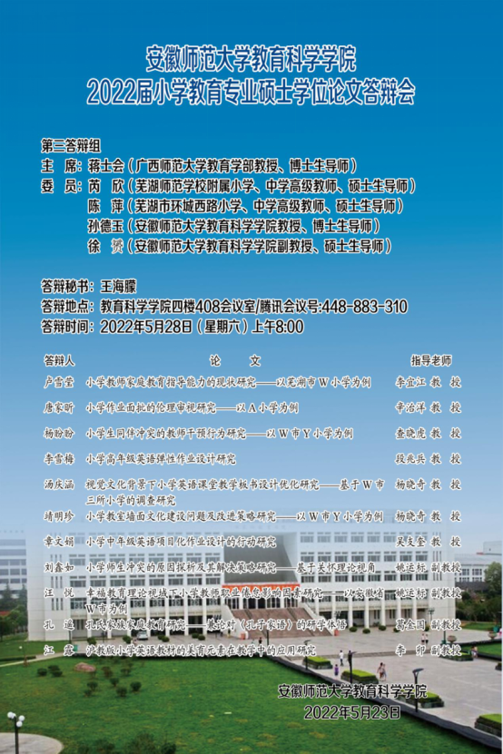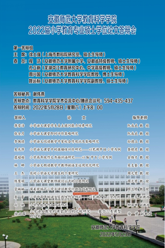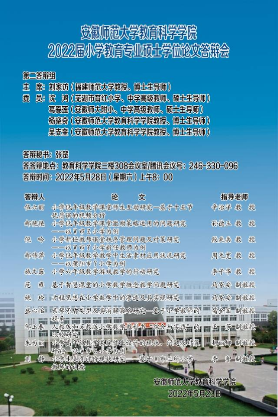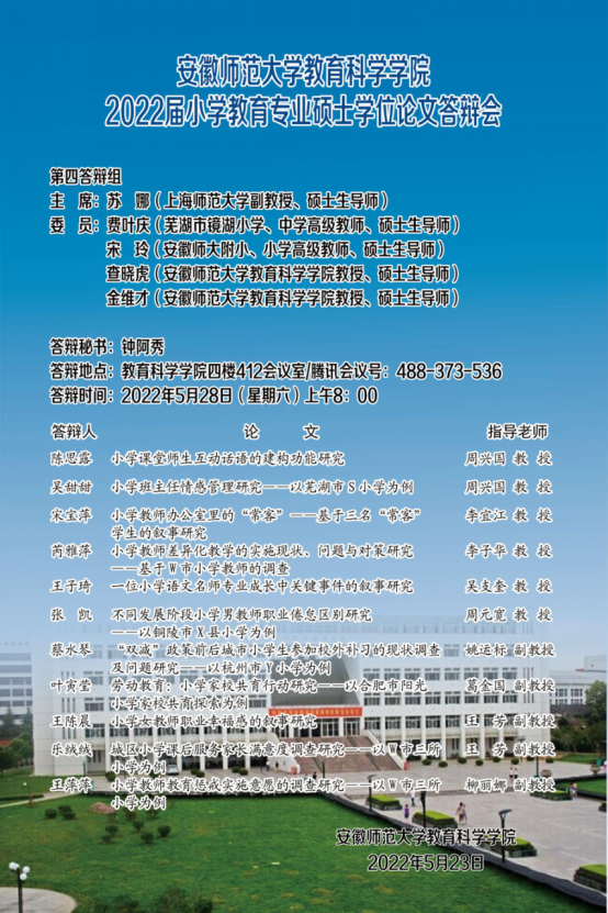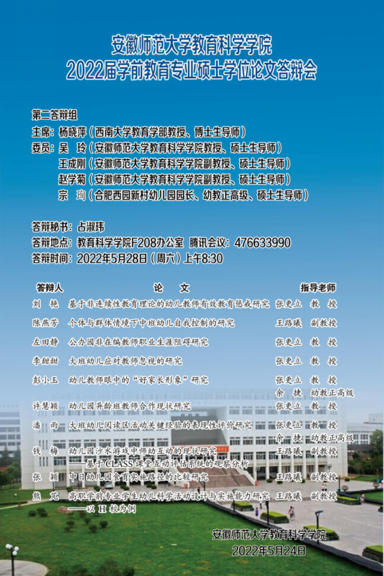 教育科学学院2022年上半年硕士研究生学位论文答辩公告(二)