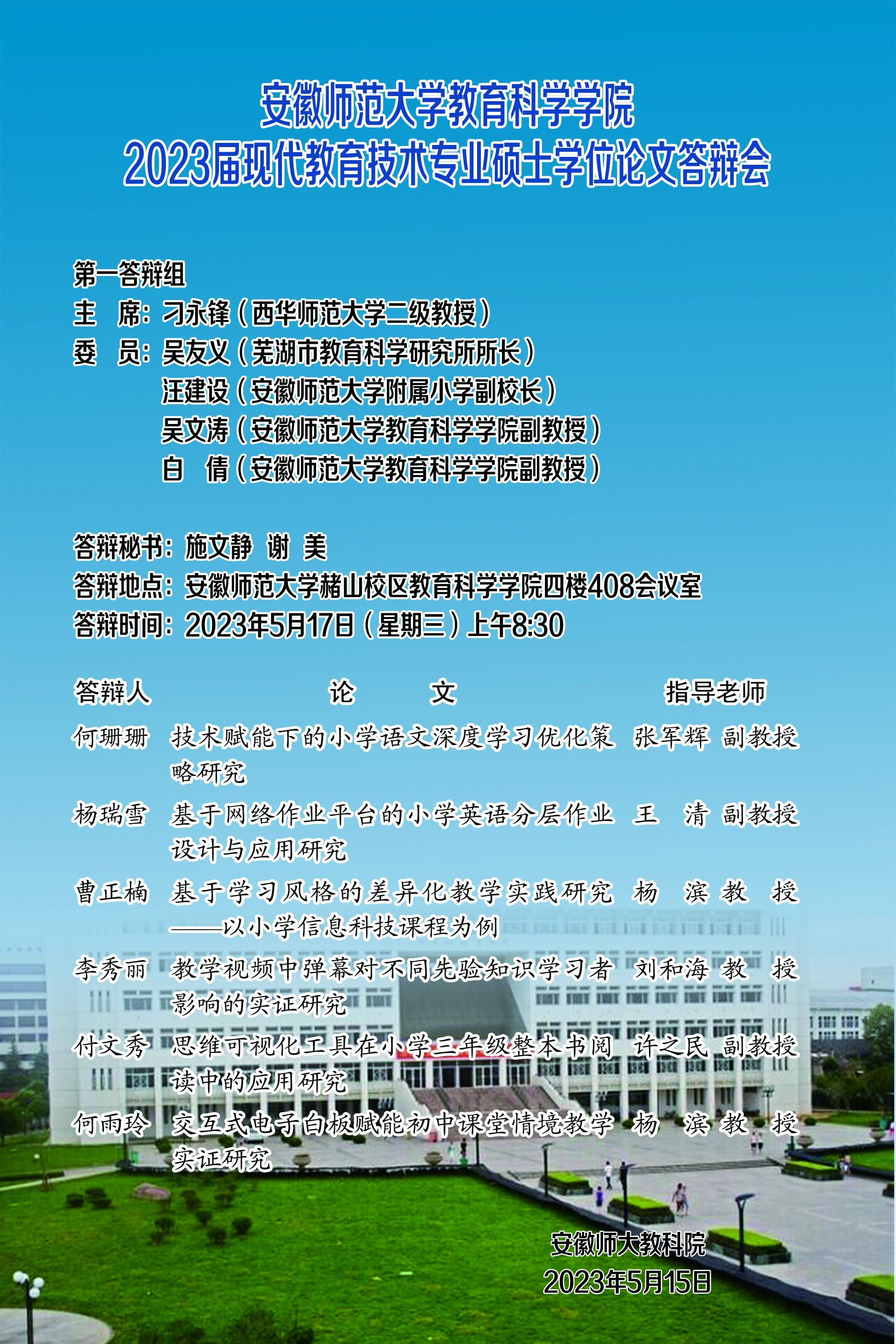 教育科学学院2023年上半年硕士研究生学位论文答辩公告(一)