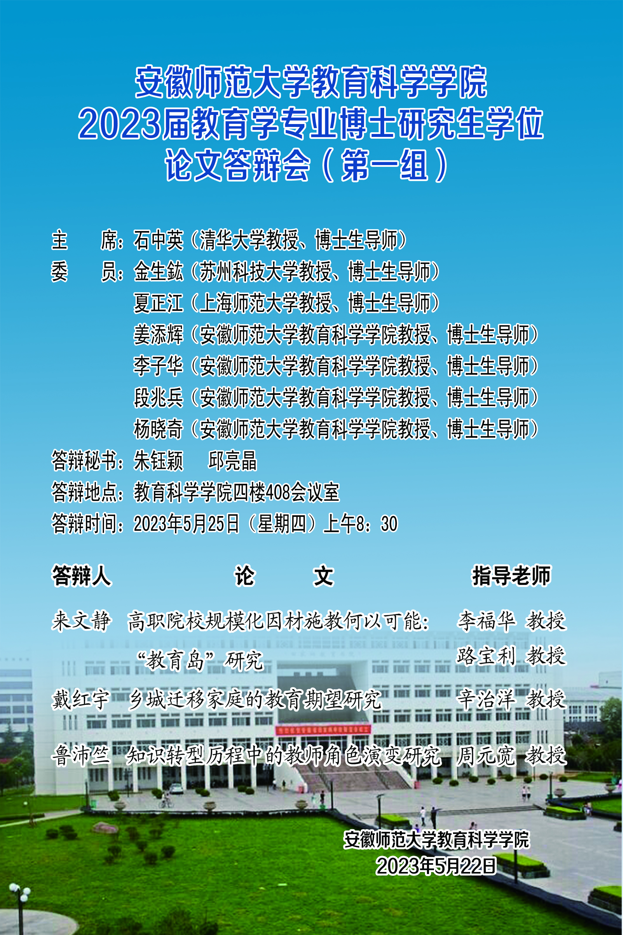 教育科学学院2023年上半年博士研究生学位论文答辩公告(一)
