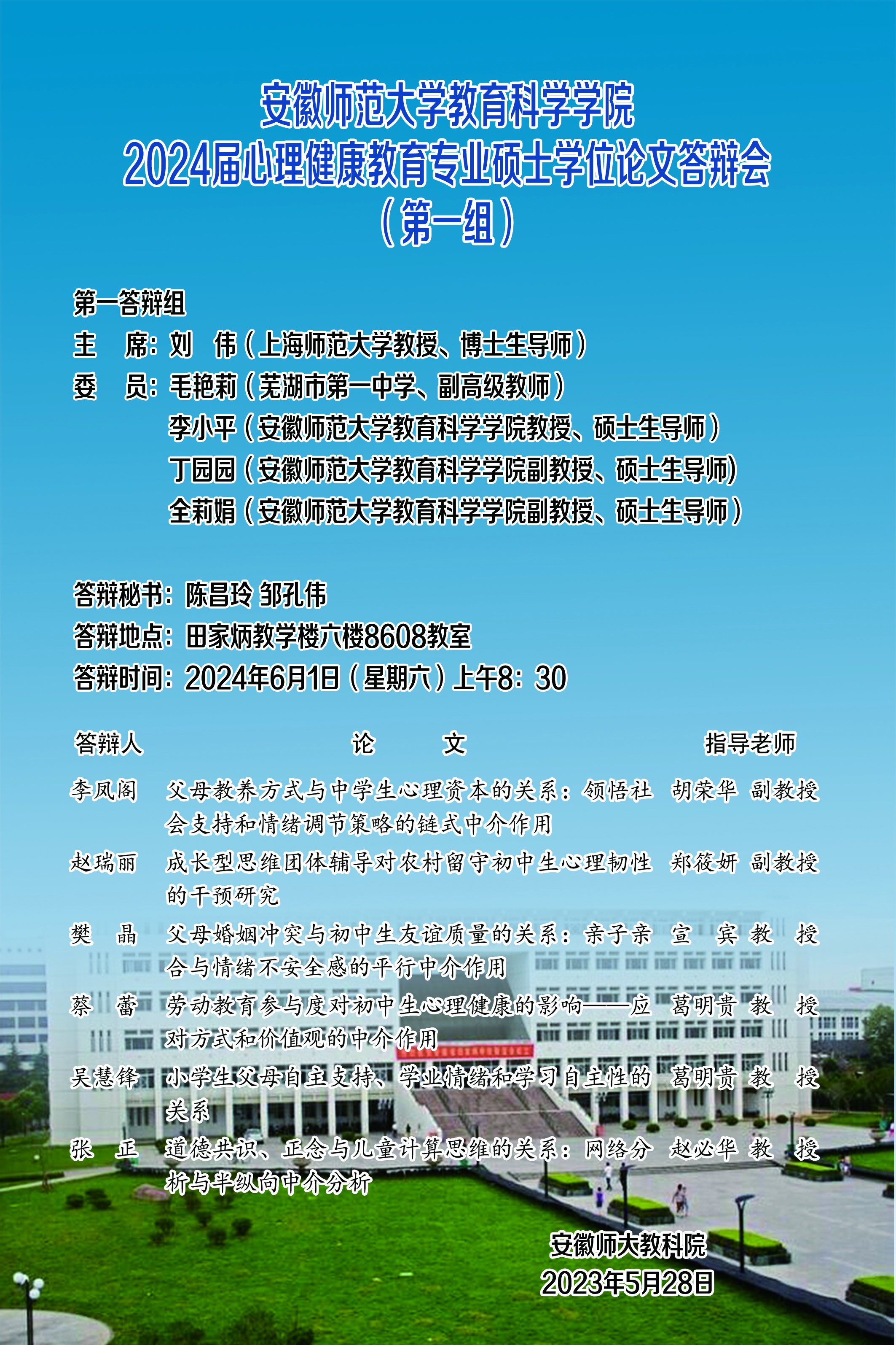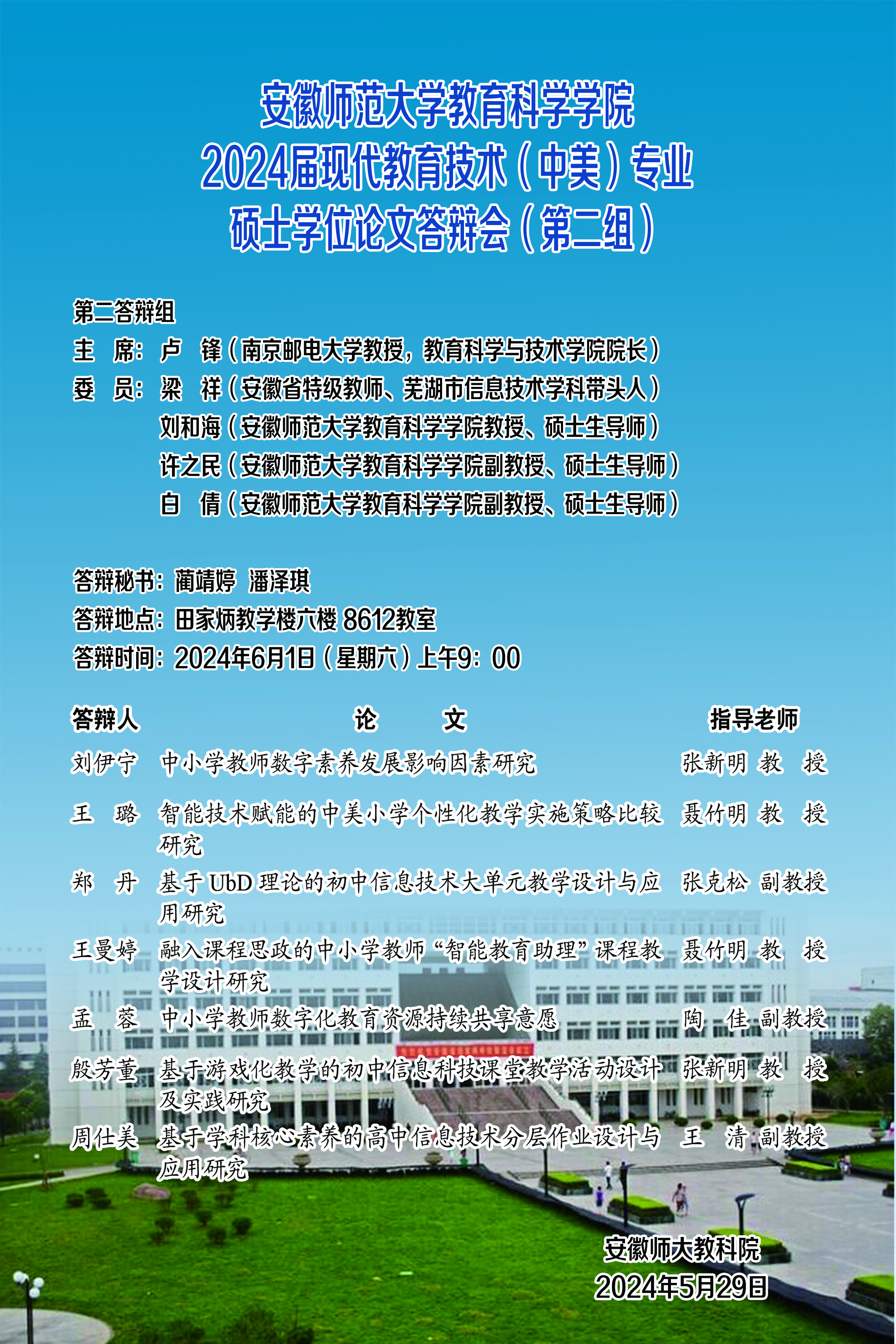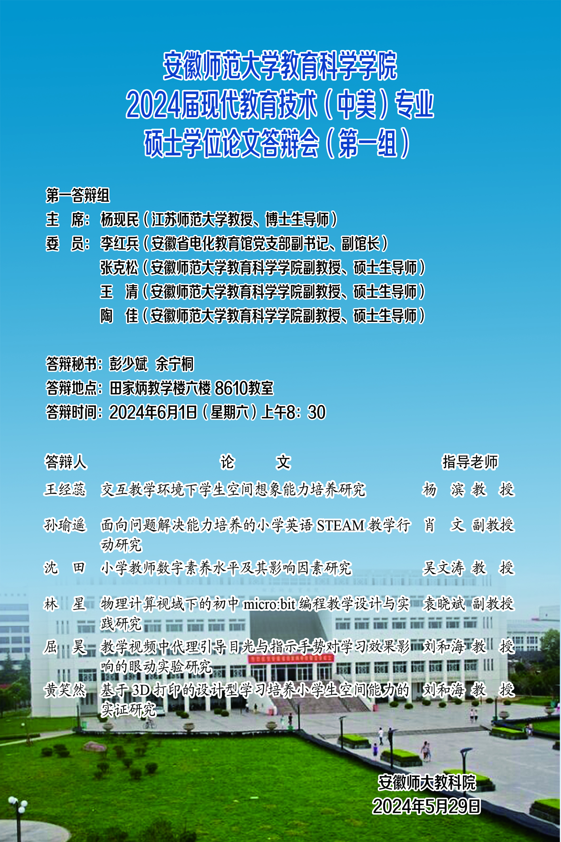 教育科学学院2024年上半年硕士研究生学位论文答辩公告(二)