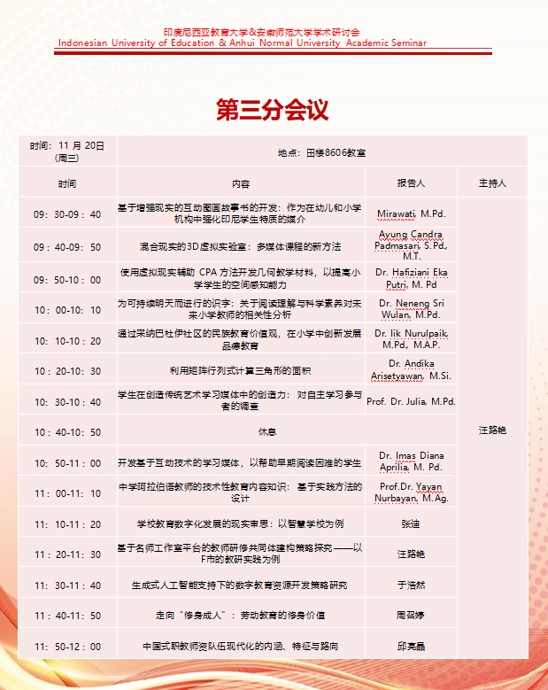 印度尼西亚教育大学与安徽师范大学学术研讨会会议日程