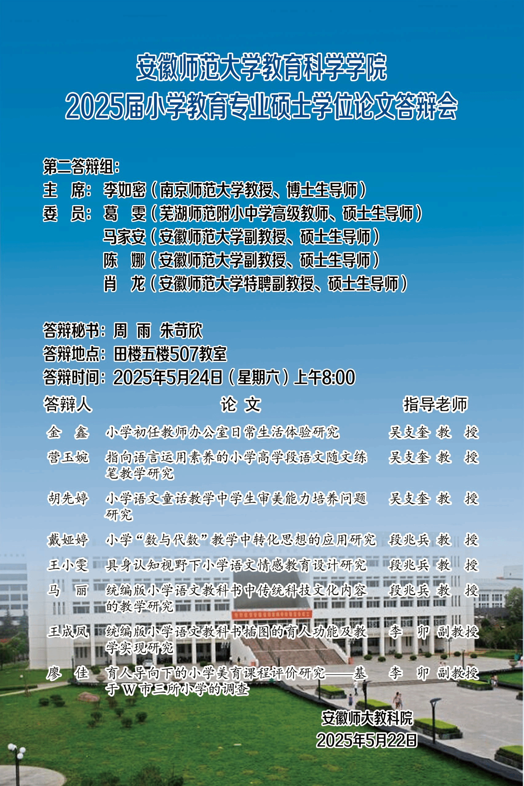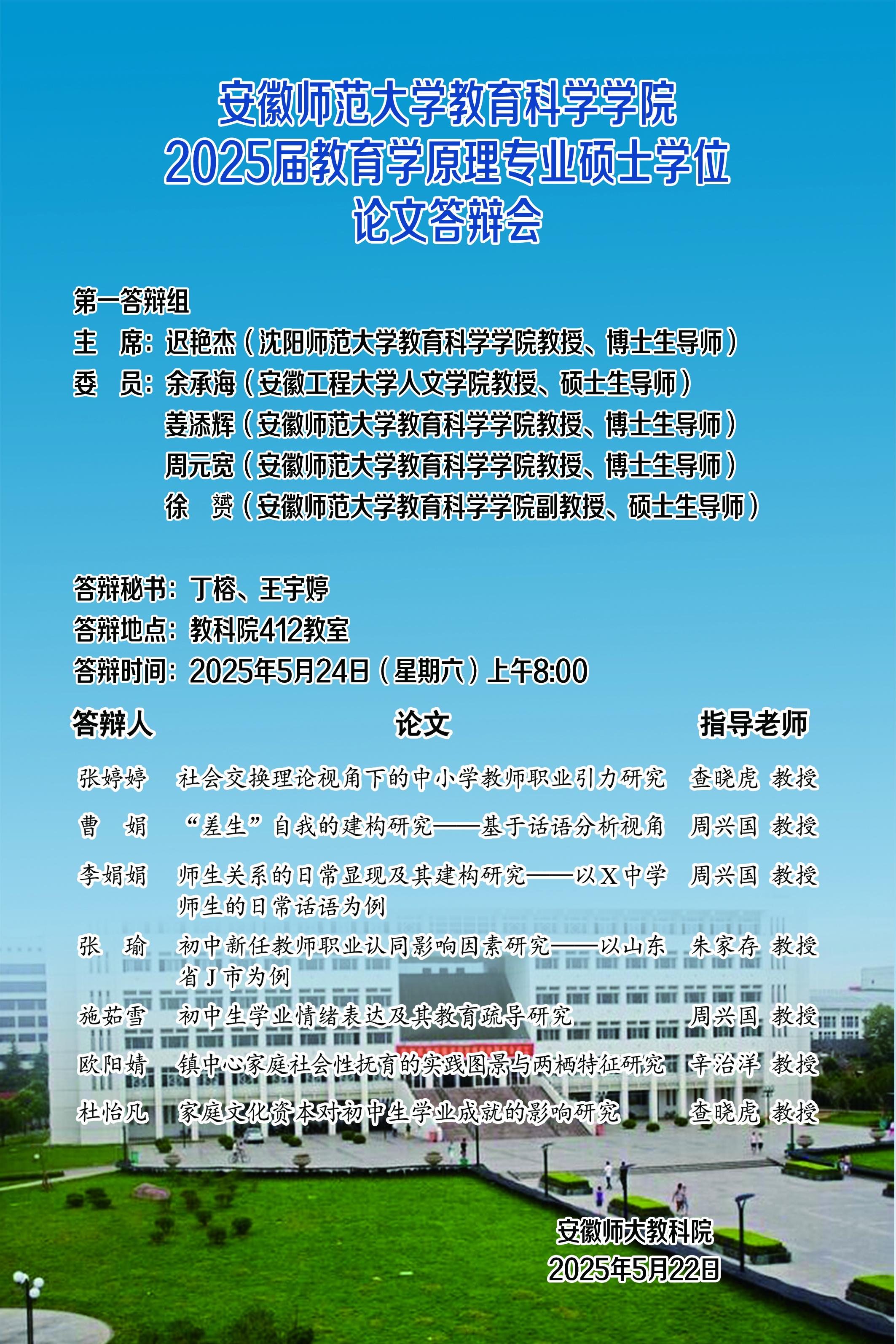教育科学学院2025年上半年硕士研究生学位论文答辩公告(二)