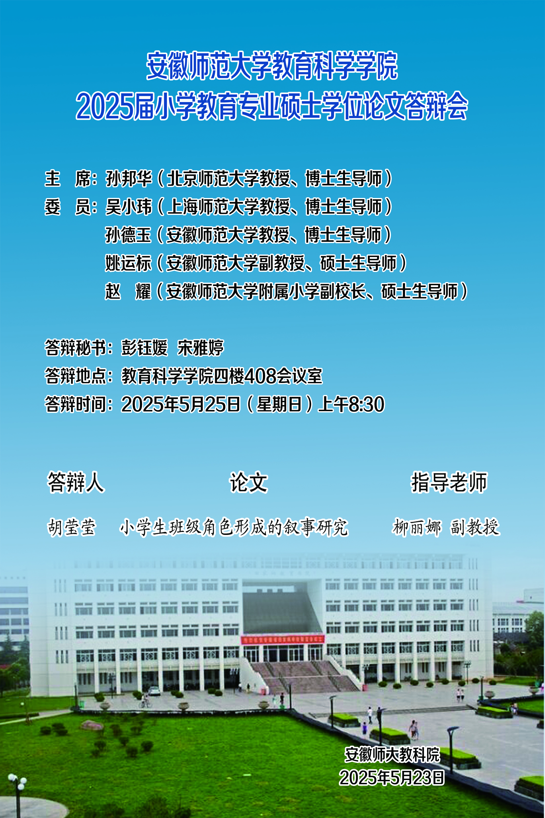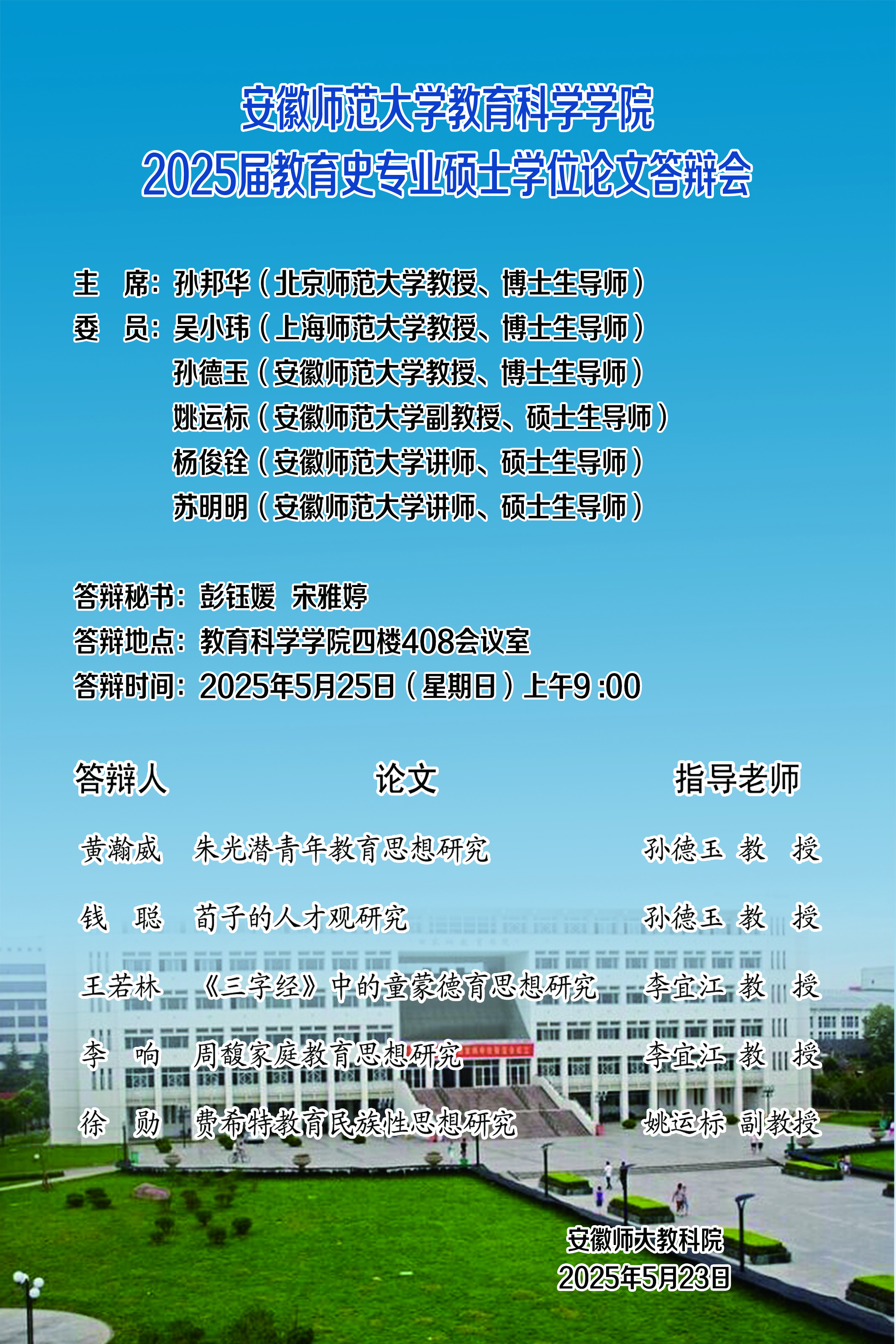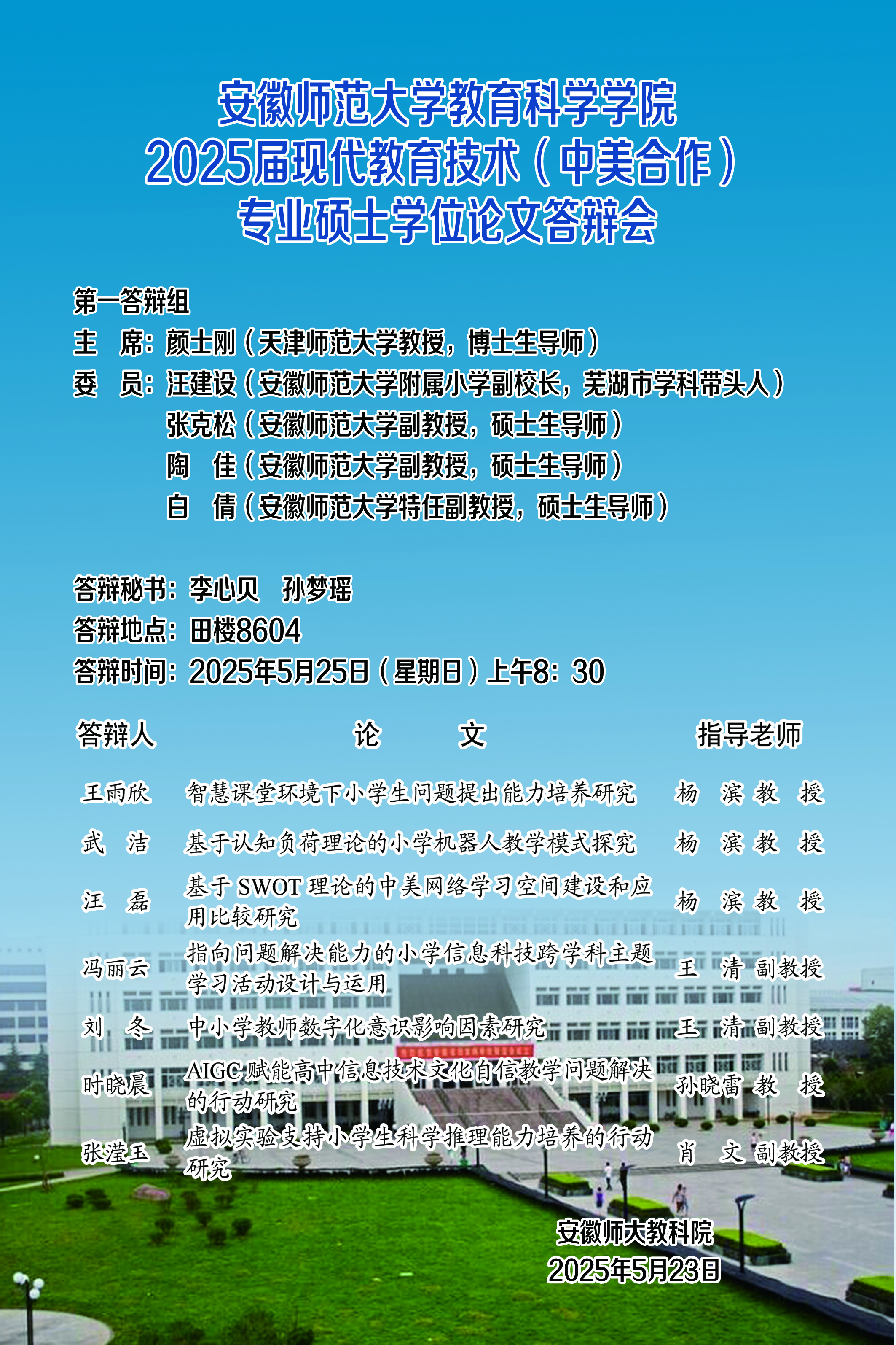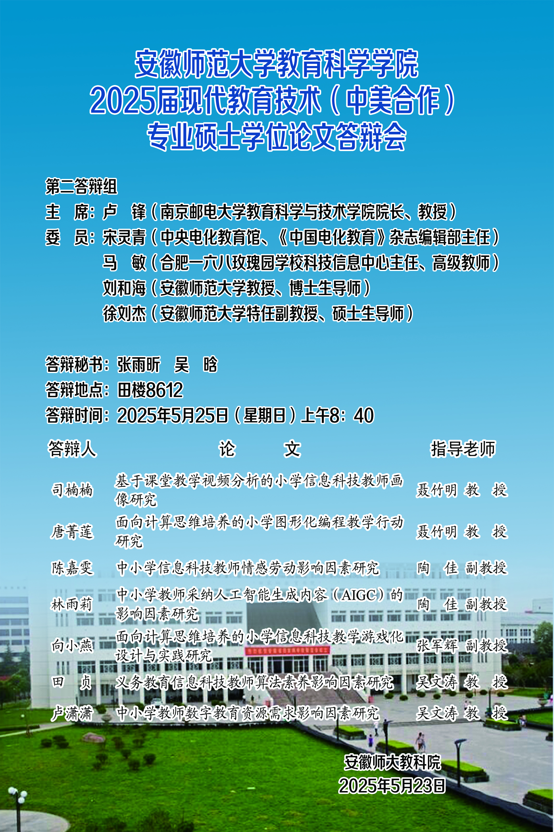 教育科学学院2025年上半年硕士研究生学位论文答辩公告(三)