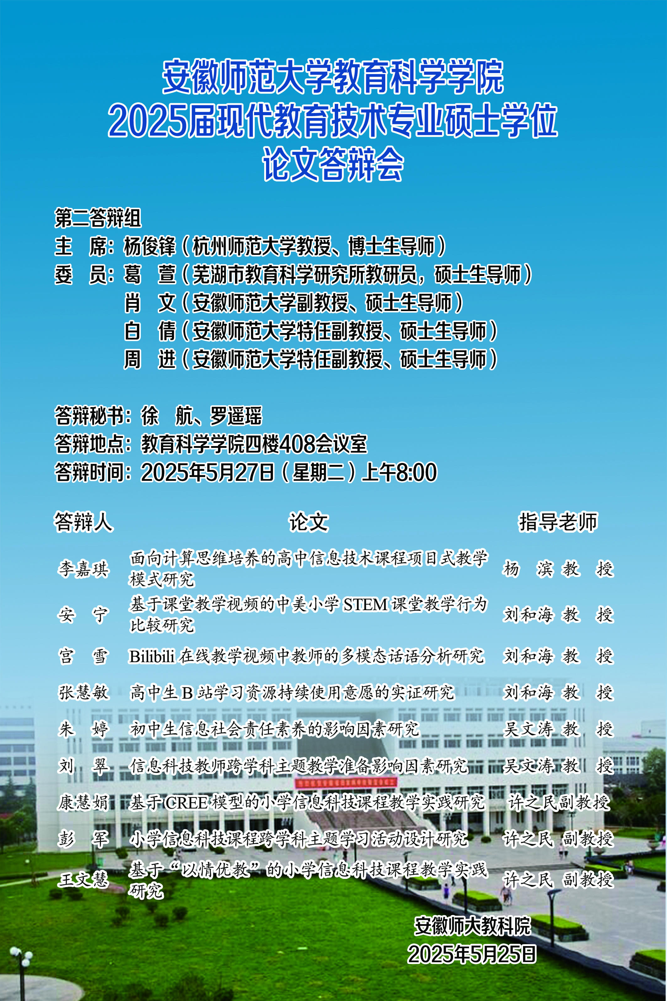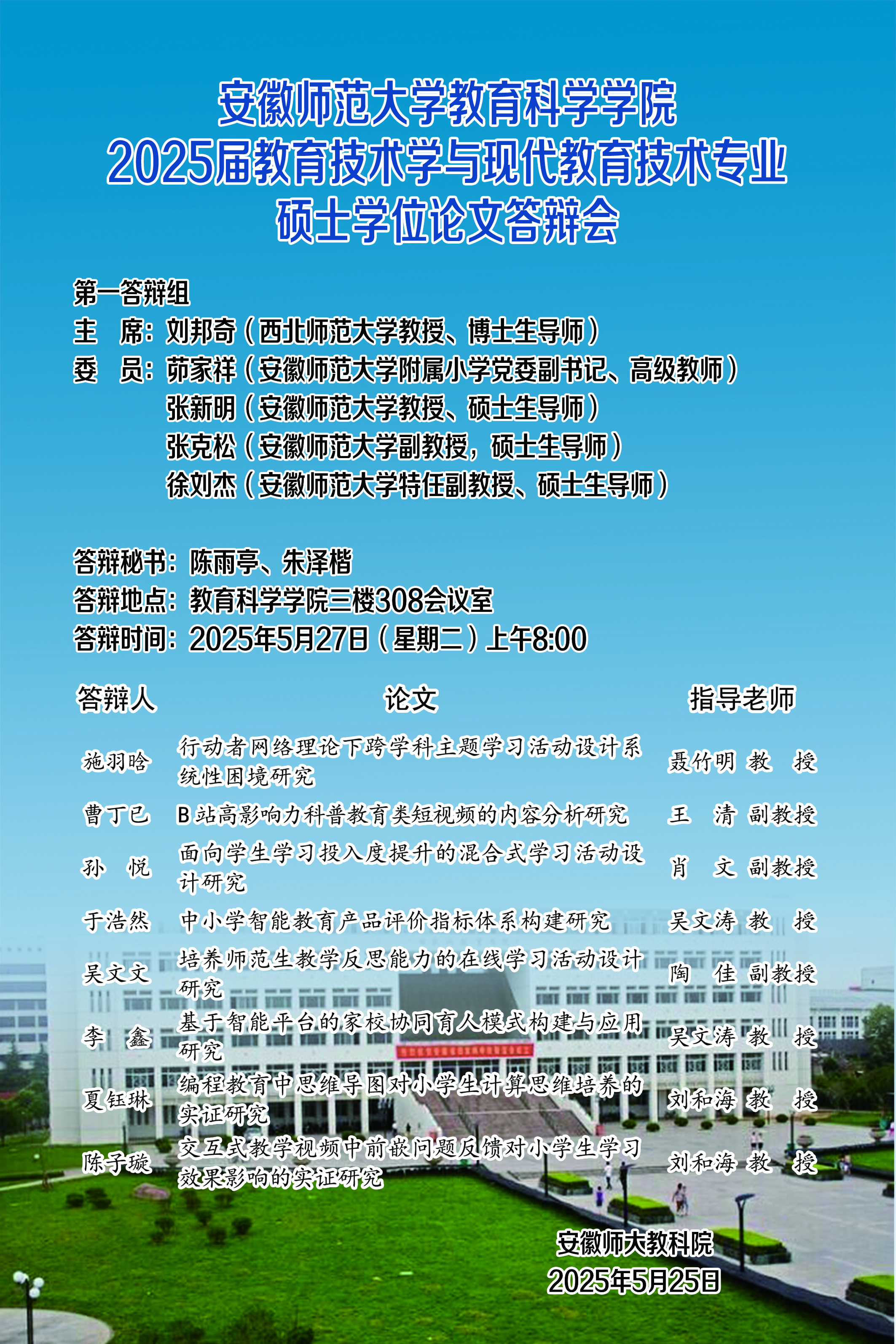 教育科学学院2025年上半年硕士研究生学位论文答辩公告(五)