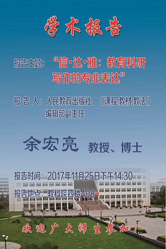 学术报告预告:“信 达 雅:教育科研写作的专业表达”